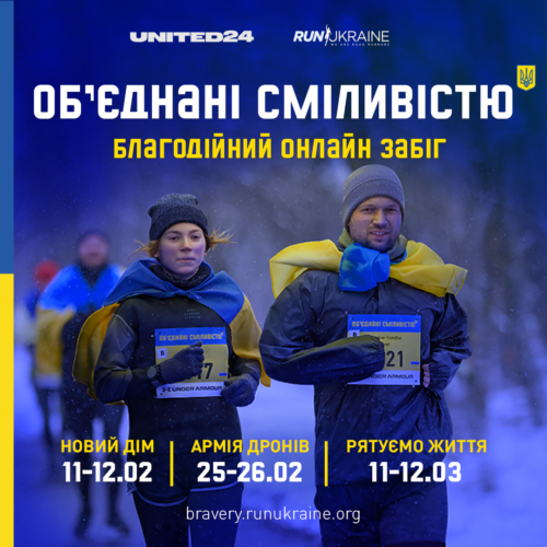 “ОБ’ЄДНАНІ СМІЛИВІСТЮ” – серія благодійних онлайн-забігів, які прославляють дух мужності та рішучості українського народу. Ініціатива, створена Run Ukraine за підтримки United24, допомагає зібрати кошти для підтримки України. Кожен етап забігу має свою основну мету: